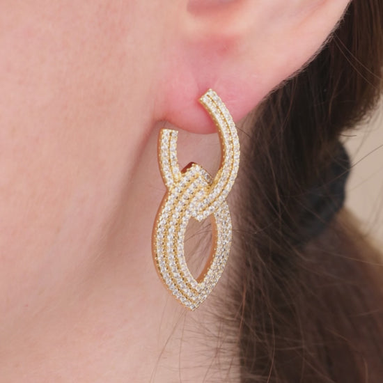 Indulge in the luxurious craftsmanship of our Lilah CZ Interlocking Drop Stud Earrings. These stunning earrings feature link drop design and sparkling cz studded oval links that will elevate any outfit. With these earrings, you'll exude sophistication and elegance. Perfect for adding a touch of glamour to any occasion.