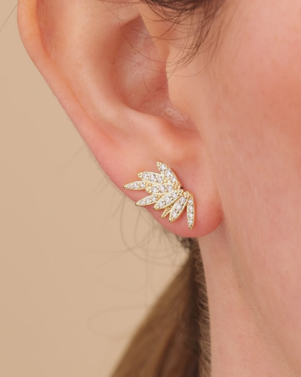 Features: Earring is 0.6" , organic leaf design, 1mm pave cz stones, curved post backing, lead and nickel free