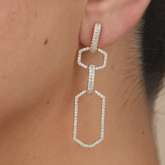 Experience elegance and luxury with our Harlene CZ Chain Link Drop Stud Earrings. Crafted with four dazzling CZ links, these dangle stud earrings exude sophistication and style. Elevate your look with these exclusive and tasteful earrings, perfect for any occasion.