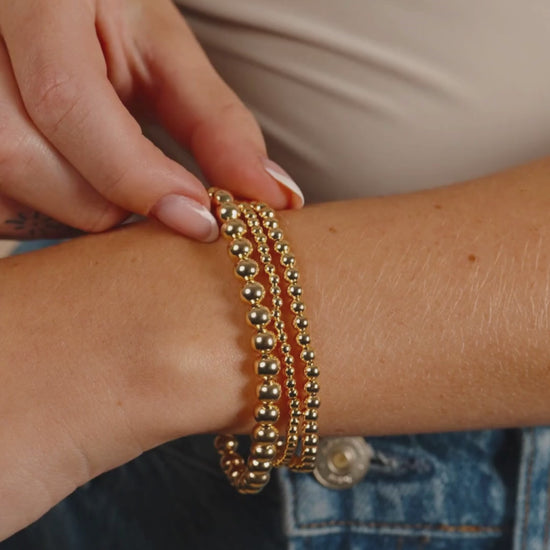 This set is all about easy, everyday style. The beaded bracelet trio (3mm, 4mm, and 6mm) is perfect for stacking or wearing alone, with a stretch fit that’s comfortable no matter the occasion. It pairs perfectly with the threader hoop earrings, designed with a sleek slide-through shape that’s lightweight, stylish, and hypoallergenic. Minimalistic pieces that go with everything.