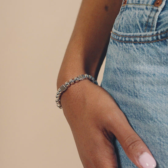 This beaded bracelet is studded with sparkling details! The CZ stone charms come in a variety of shapes and add shine to any look. Available in gold and silver tones.