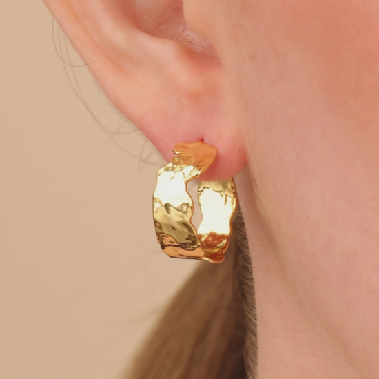 Bold with an organic edge. These molten-texture hoops give a sculptural twist to your everyday earring lineup. With fluid movement and an artful silhouette, they’re the kind of piece that speaks without shouting. Pair with a sleek bun or messy waves for contrast.