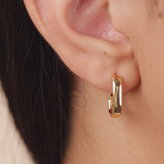 Minimal, sleek, and endlessly wearable. The Annika Polished Micro Hoops bring a modern edge to the classic huggie with their bold, rectangular shape and high-shine finish. The ultimate staple—perfect solo or stacked.
