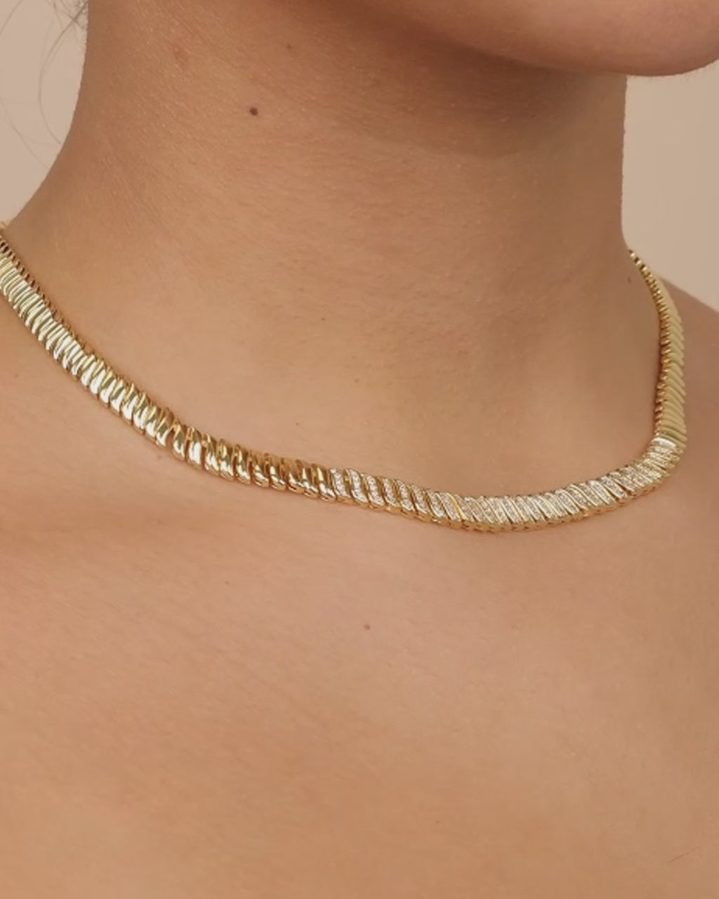 Introducing the Arabella Chain Necklace: the bold statement piece that'll have you shimmering like the star you are! With a dazzling CZ encrusted center chain, it'll bring a subtle sparkle to your look. Shine on, superstar!