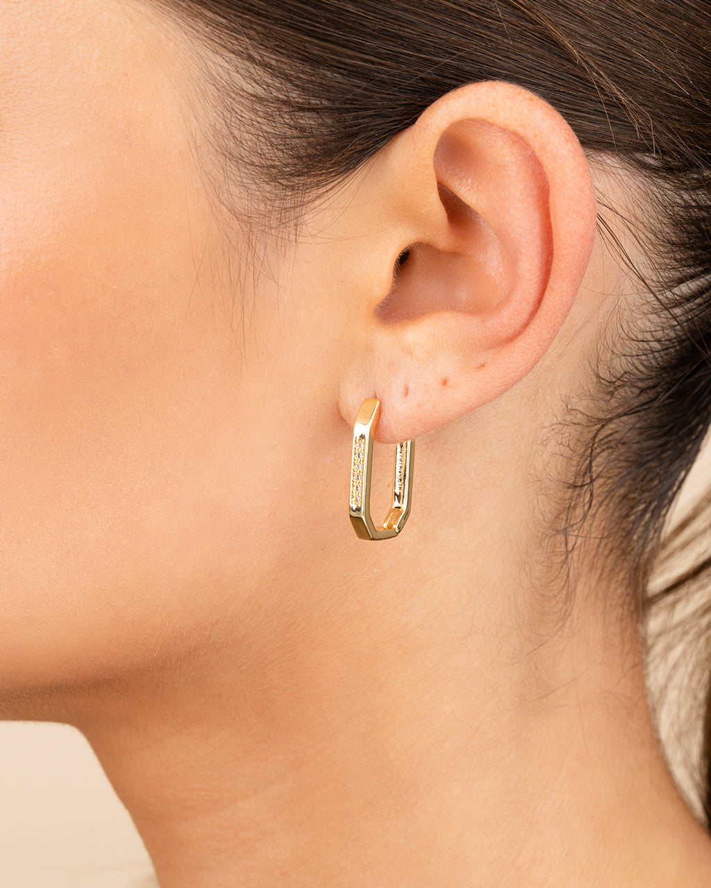 Sleek angles, pavé sparkle. These geometric huggies hit that sweet spot between edgy and polished.