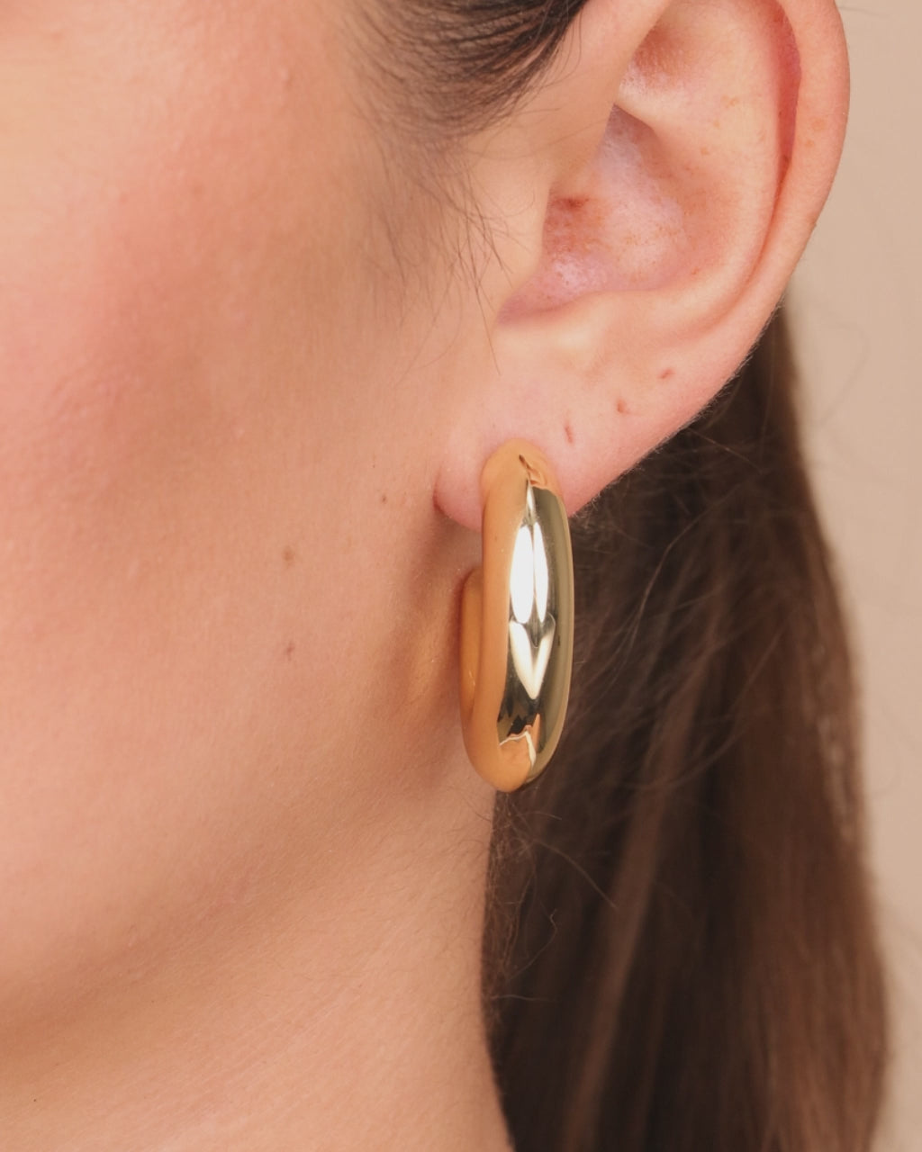 These chunky open hoops are sure to get you noticed! Add these sleek and smooth accessories to any look for an instant dose of shine. Available in gold and silver tones.