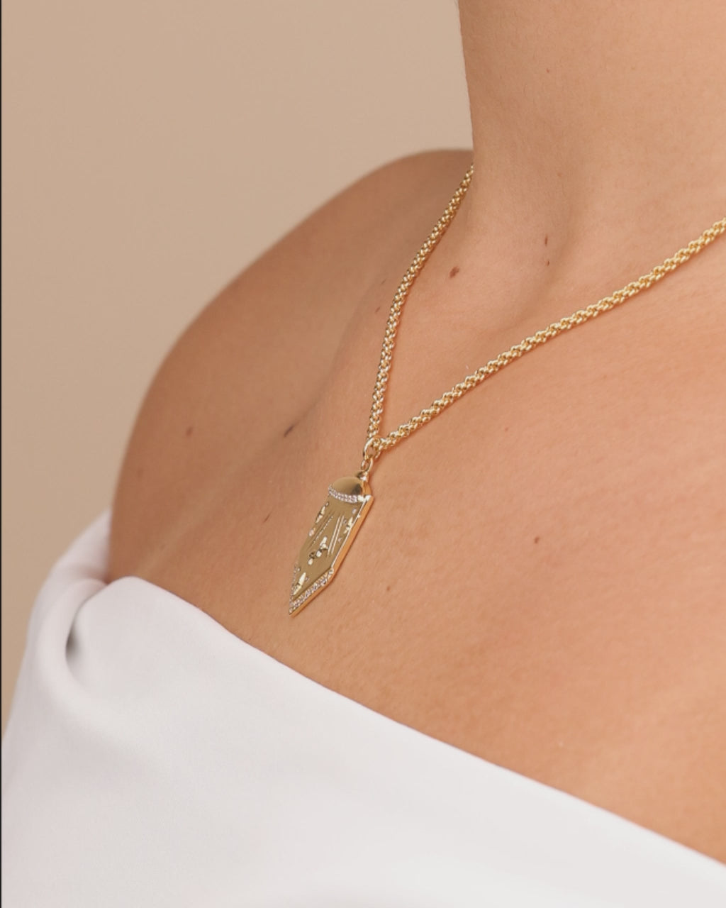 Introducing the Beam Me Up CZ Pendant Necklace, a luxurious accessory perfect for those who want to add a touch of outer space to their style. Crafted with stunning CZ stones, this pendant necklace depicts a mystical encounter with aliens. Elevate your look and feel out of this world with this exclusive piece.