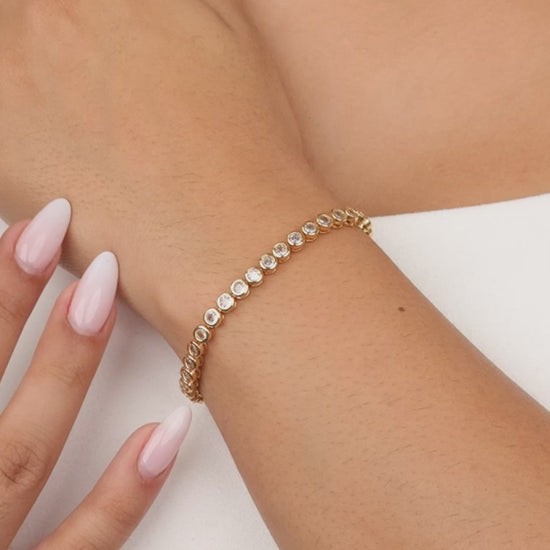 Add some shine to your life and your look with this bezel CZ tennis bracelet! Choose from the silver or gold tone -- all of them are the perfect addition to that fancy look you're putting together. Made from high-quality materials to ensure years of wear.