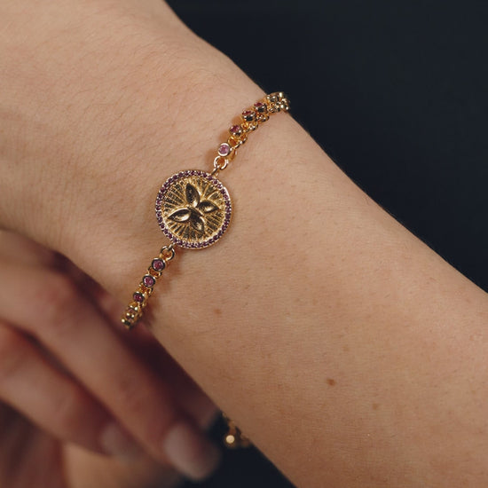 Adorn yourself with the exquisite Bindi Bolo Bracelet. Dazzling blush CZ stones and a delicate butterfly pendant make this bracelet a true statement piece. Its adjustable design ensures a perfect fit for every wrist, adding a touch of elegance and charm to any outfit.