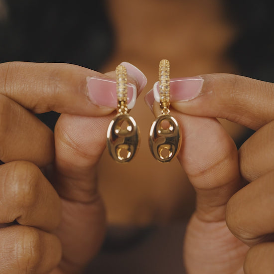 Indulge in luxury with our Bliss CZ Anchor Chain Micro Hoop Earrings. The elegant cz micro hoop is adorned with a delicate anchor chain dangle pendant, adding a touch of sophistication to any outfit. Elevate your style and make a statement with these exclusive earrings.