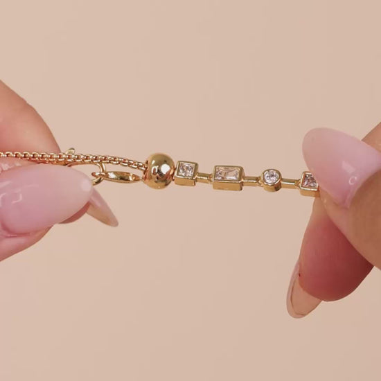 The Camden CZ Staggered Tennis Necklace isn’t your average tennis chain. With a mix of round, square, and baguette-cut Hearts & Arrows CZ stones in sleek bezel settings, it’s the perfect balance of classic and unexpected.