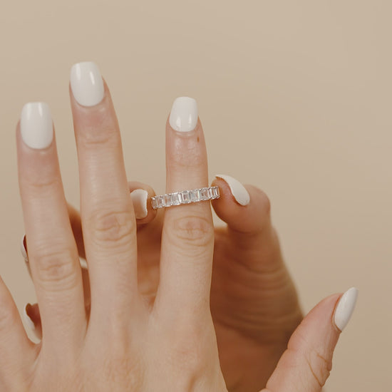Indulge in luxury with our Caroline Rainbow CZ Eternity Band Rings. Featuring a stunning rainbow of colors and baguette CZ stones, these eternity rings are available in a range of sophisticated hues including emerald, black, white, pink, blue, and emerald. Elevate your style and embrace the finer things in life with these exquisite rings.