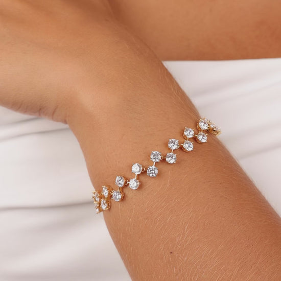 The Carson CZ Tennis Bracelet reimagines the classic with a unique zigzag design. The staggered setting creates a floating effect with the round Hearts & Arrows CZ stones, adding subtle dimension that catches all the light. Adjustable for the perfect fit.