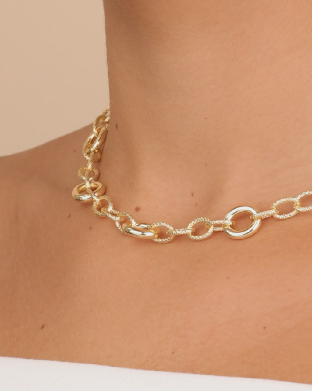 Elevate your look with our Carter Round Statement Link Necklace. Crafted with intricate round links and a stunning statement chain, this necklace is a sophisticated addition to your jewelry collection. Make a bold statement with this luxurious piece.