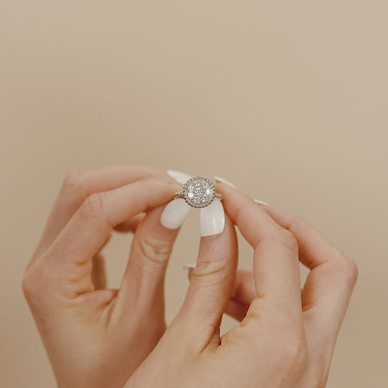 The Casey CZ Circle Ring features a stunning cluster of CZ stones arranged in a circular shape, accompanied by a delicate beaded border. The beaded and polished band adds a touch of sophistication to this elegant piece. Elevate any look with this exquisite and exclusive ring.