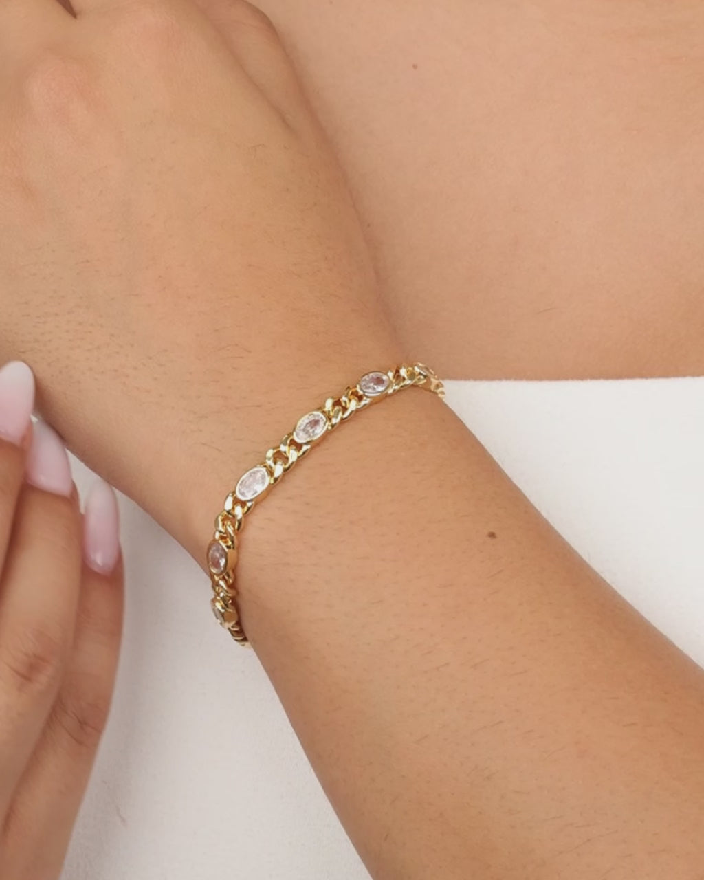 Treat yourself to some sparkle with this Cassie tennis bracelet. Featuring dazzling CZ stones set in a bezel, this bracelet will tie any look together with a subtle pop of bling. Whether you're hitting the court or just spicing up your wardrobe, this bracelet is sure to score you some style points!