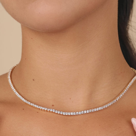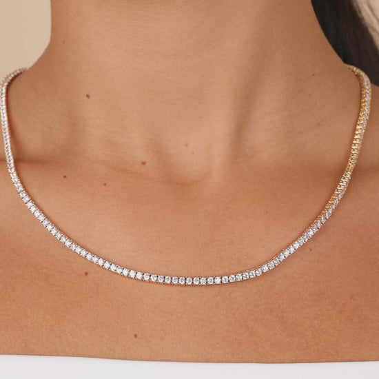 Features: Measures 16" or 20" length, 0.1" width, 2.5mm CZ stones, Lead & Nickel free, latch clasp