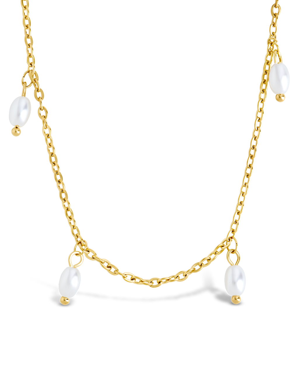 Materials: 14K gold or rhodium plated brass, stainless steel, faux pearl