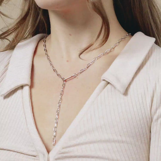 You're not afraid to make a statement. That's why this chain link lariat, which is simple yet bold, is perfect for you! Available in silver and gold tones, this necklace is ideal for layering or pairing with other pieces.
