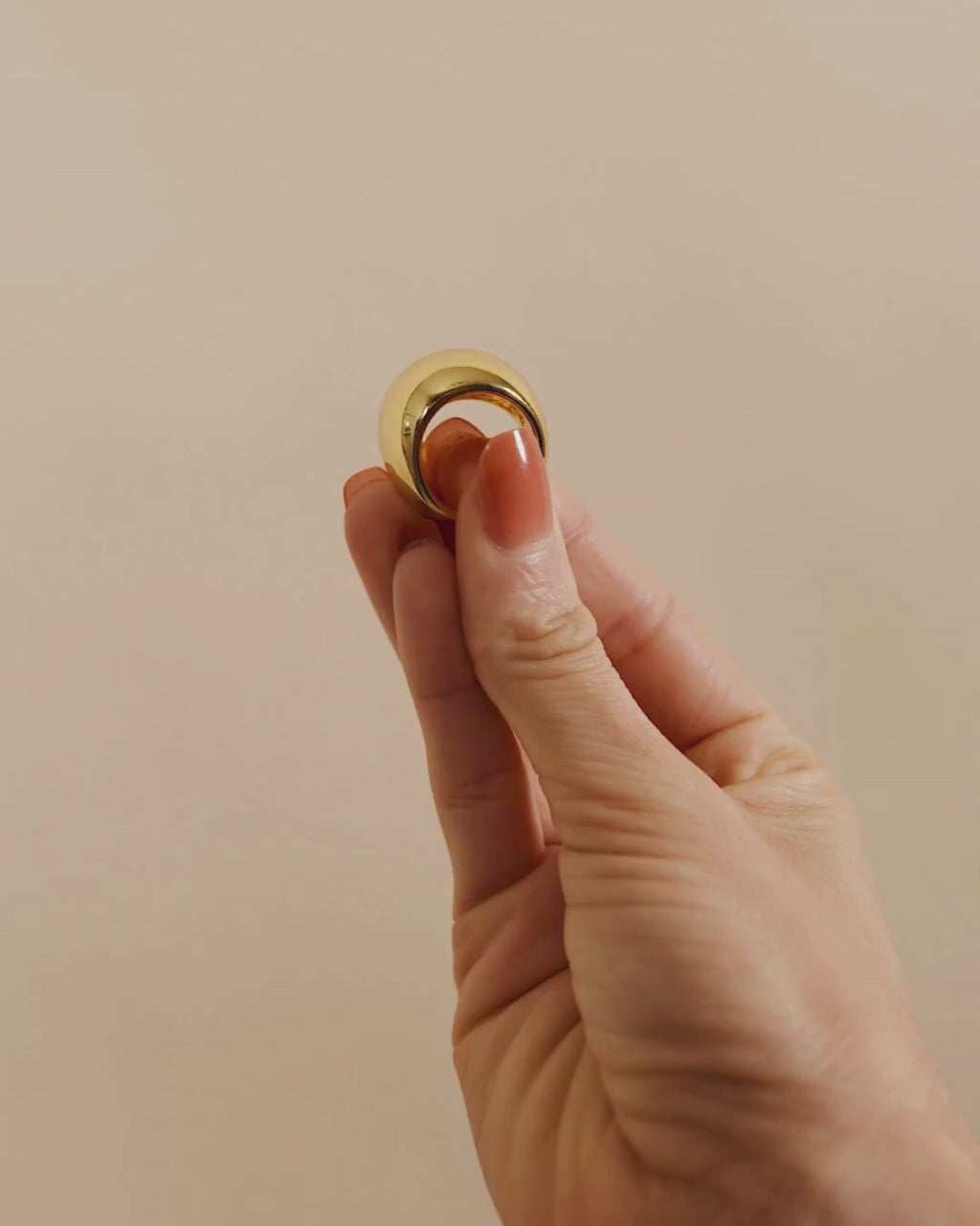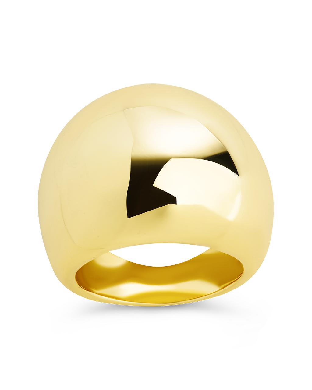 Bold, sculptural, and unapologetically statement-making. This dome ring delivers maximum impact with its high-polish finish and oversized silhouette. Pair it with a sleek mani and minimal stack to let it shine.