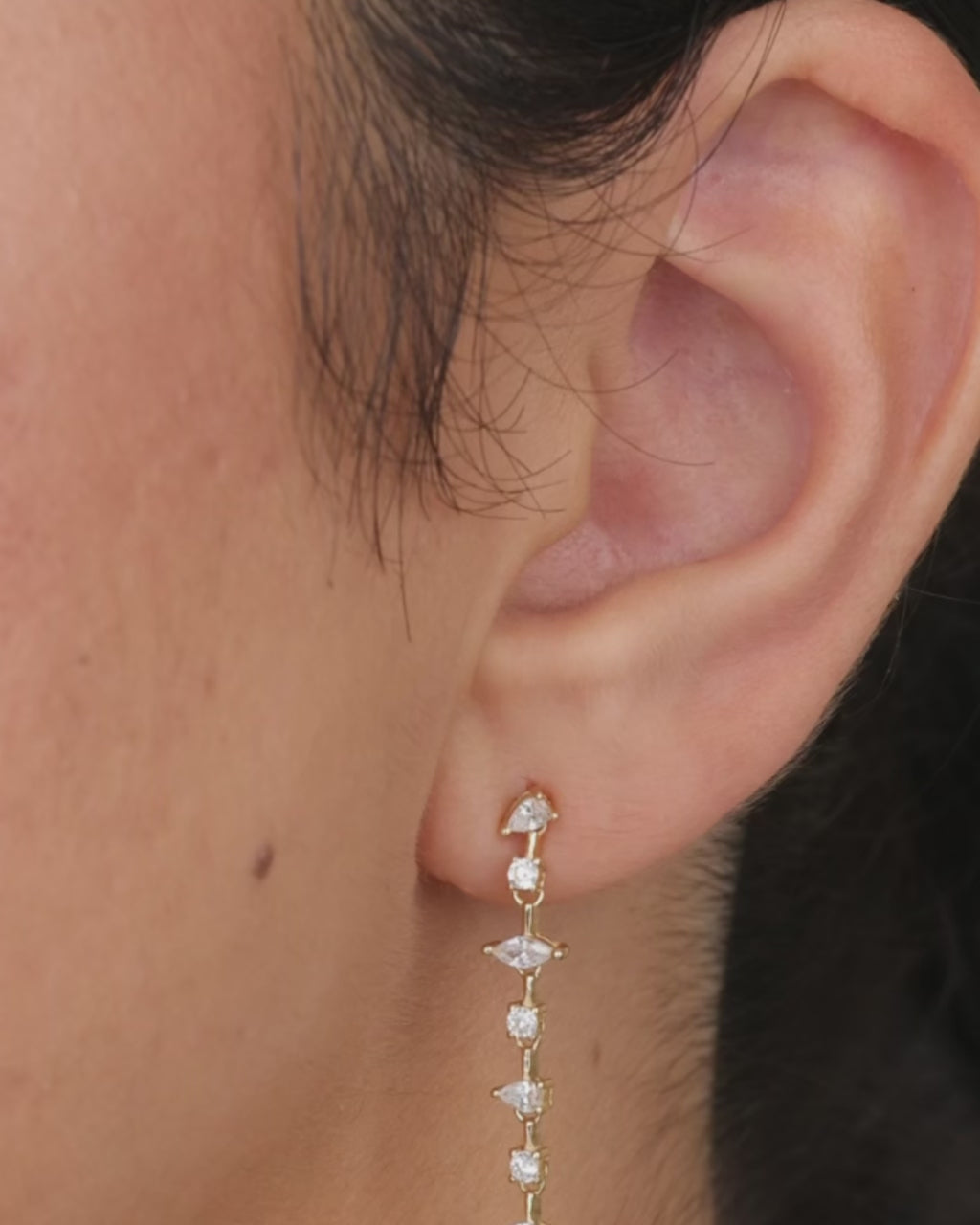 Indulge in the luxury of the Sterling Silver Chastin Stationed CZ Dangle Stud Earrings. These elegant earrings feature a delicate arrangement of stationed cubic zirconia stones, varying in size for a unique and sophisticated look. Elevate your style with these exclusive, dangle earrings.