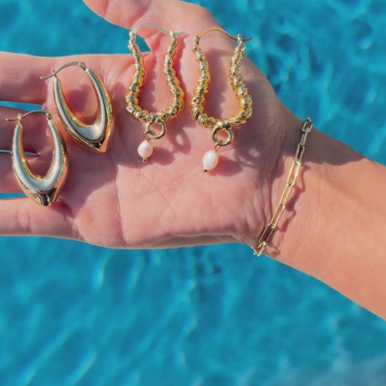 Indulge in luxury with our Chérie Drop Studs. These elegant earrings feature lustrous pearls, hand-selected for their exquisite beauty. The delicate drop design adds a touch of sophistication to any outfit, making these studs the perfect statement piece for any occasion.
