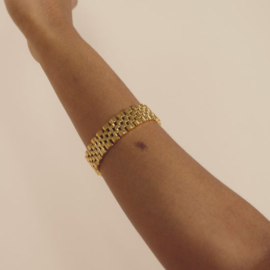 Love bold, elegant pieces? You'll want to wear this chunky watch band chain bracelet every day! This versatile bracelet can be worn day and night, and is perfect for any occasion. Available in gold and silver tones.