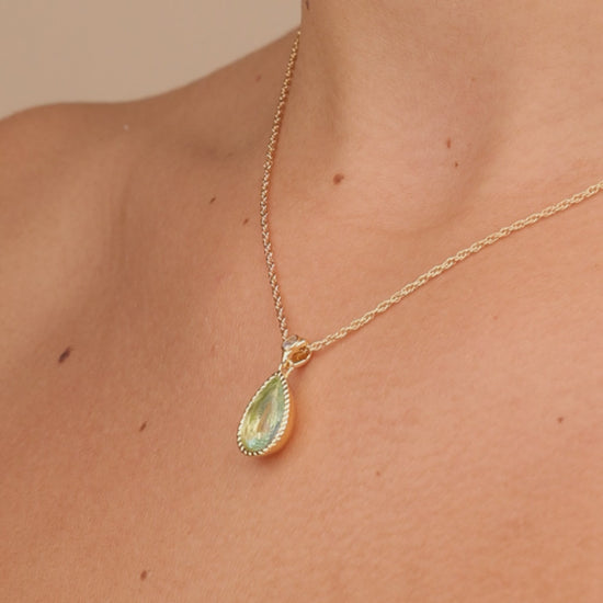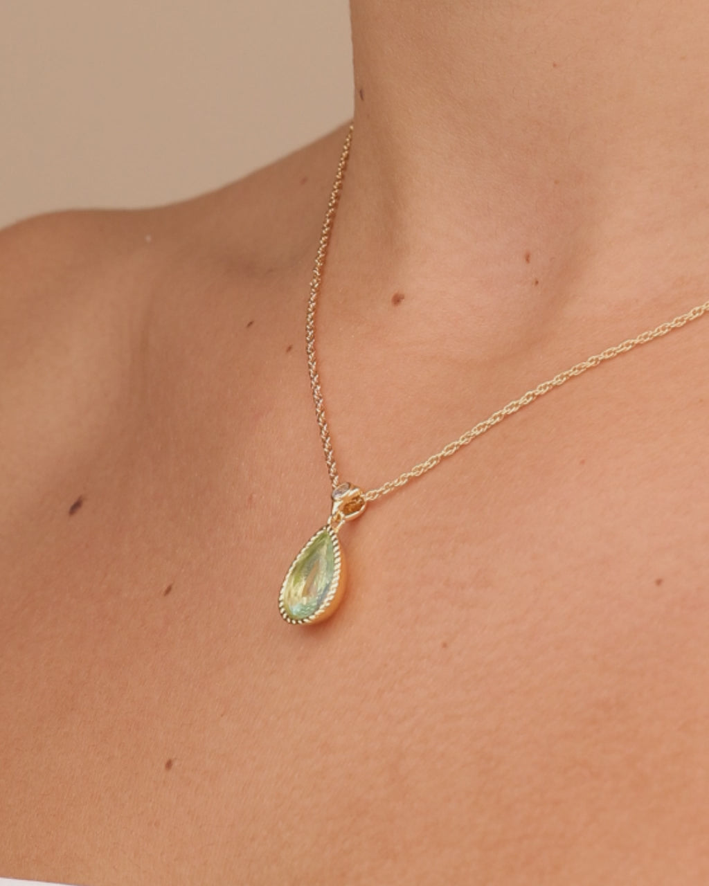 Dazzle everyone you meet with this mysterious, chic pendant! This necklace features a pear-shaped pendant with a clear CZ stone on top. Available in gold and silver tones. Adjustable for a perfect fit.