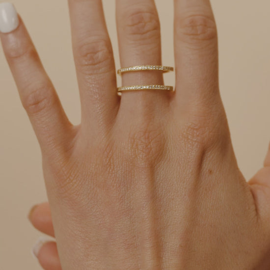 Enhance your style with the Wendy CZ Stacking Open Band Ring. Featuring an open design and double row of sparkling cubic zirconia, this ring adds a touch of elegance to any outfit. Create a unique look by stacking multiple rings or wear it on its own for a classic and sophisticated statement.