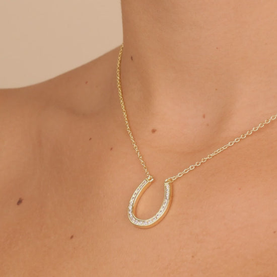 Good luck is sure to find you when you're wearing this necklace! It features an open horseshoe pendant that is studded with delicate CZ stones. This glam, dainty necklace is available in gold and silver tones.