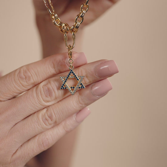 Embrace the timeless elegance of our CZ Star of David Charm. Crafted with sparkling blue and white CZ stones, this charm exudes sophistication and adds a touch of luxury to any outfit. Complete your look with this symbolic and stunning piece.