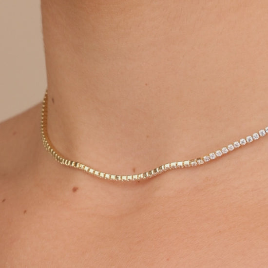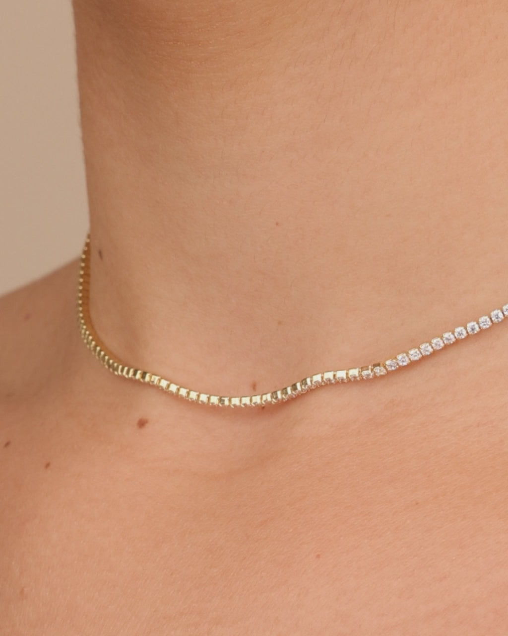 Introduce a touch of sparkle to your look with the Dani Chain Necklace. Stunningly crafted with a delicate chain and a generous helping of CZ stones, this tennis necklace is the perfect accessory to make a statement without saying anything. Stay sparkling!