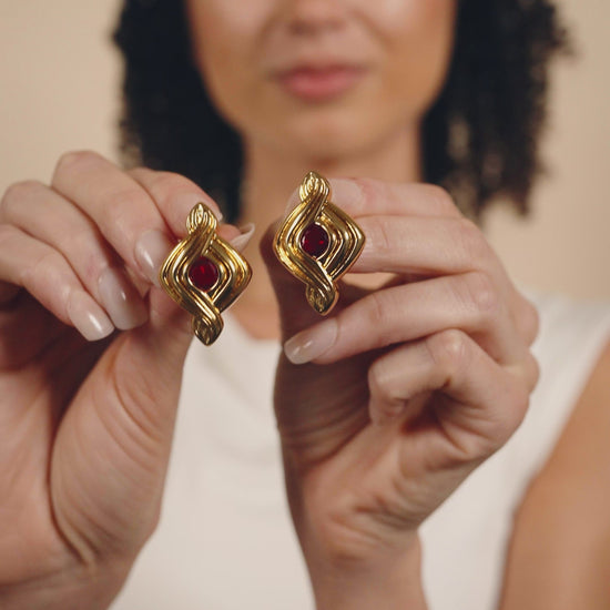 Indulge in luxury and elevate your style with our Danish CZ Stud Earrings. These statement earrings feature vibrant ruby CZ stones, reminiscent of a delicate french patisserie. Adorn yourself with sophistication and charm with every wear.