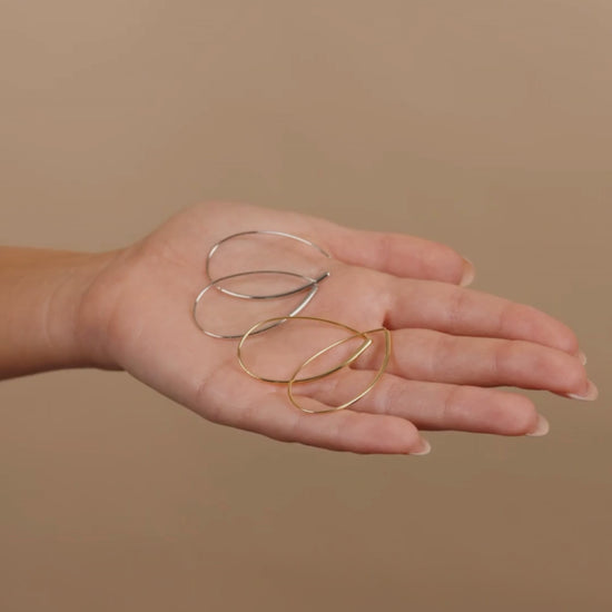 These threader hoops are sure to be unlike any other hoops in your earring collection. Their unique shape is delicate, but not so delicate that they won't get noticed when you wear them out and about! Choose between two gold, two silver, or one gold and one silver hoop for a versatile and elegant look.