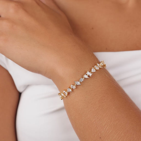 A mix of modern cuts in one bracelet made to catch the light. With alternating shapes and a sleek silhouette, this tennis bracelet adds just the right dose of sparkle. Pair it with your favorite stack or wear it on its own for a refined moment.
