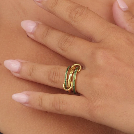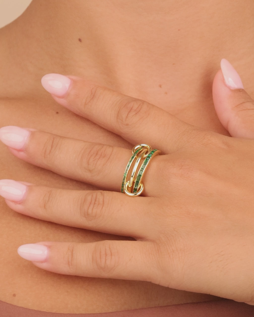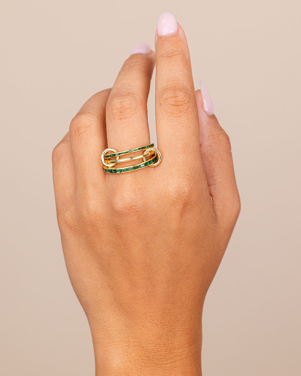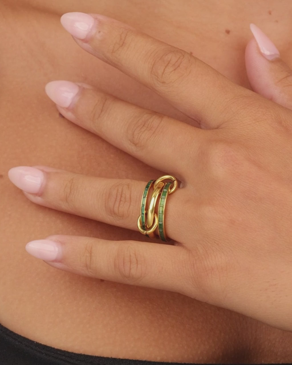 A bold pop of green enamel meets a sleek gold link—statement-making without even trying. Layer it with minimal bands or let it stand on its own.