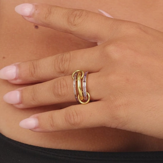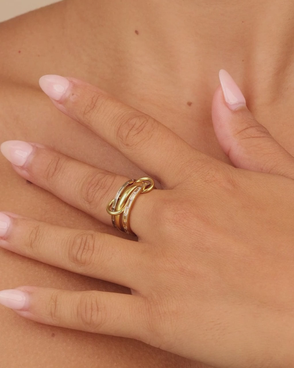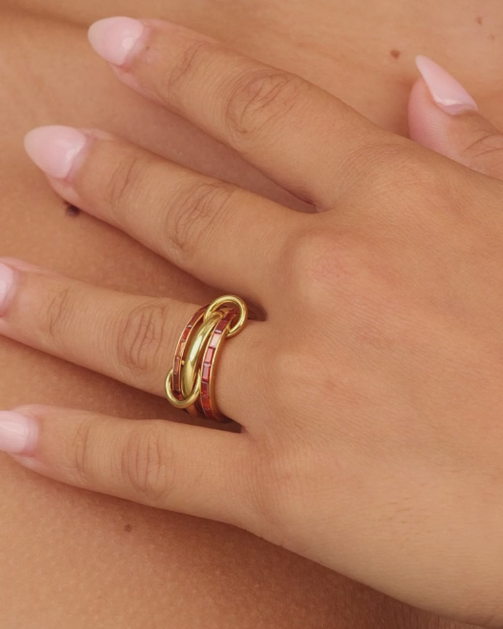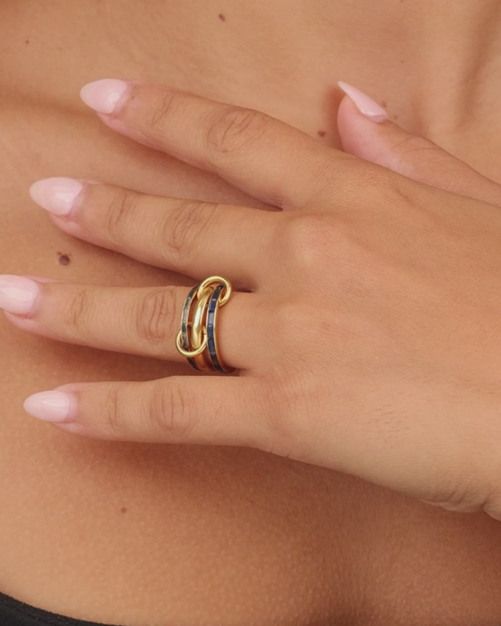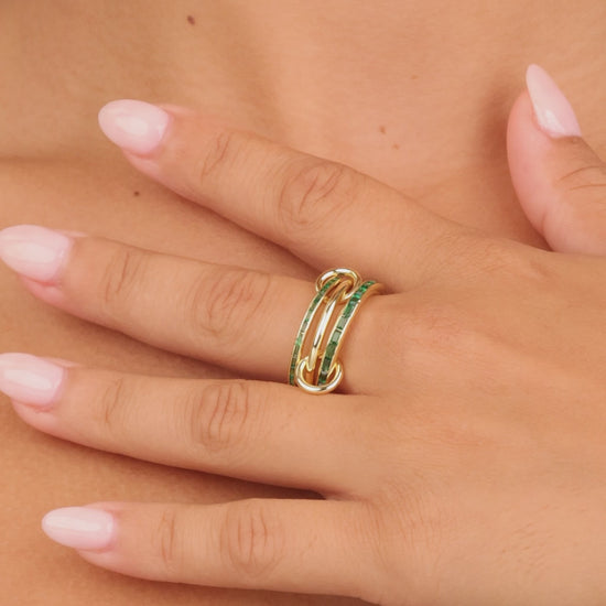 A bold pop of green enamel meets a sleek gold link—statement-making without even trying. Layer it with minimal bands or let it stand on its own.