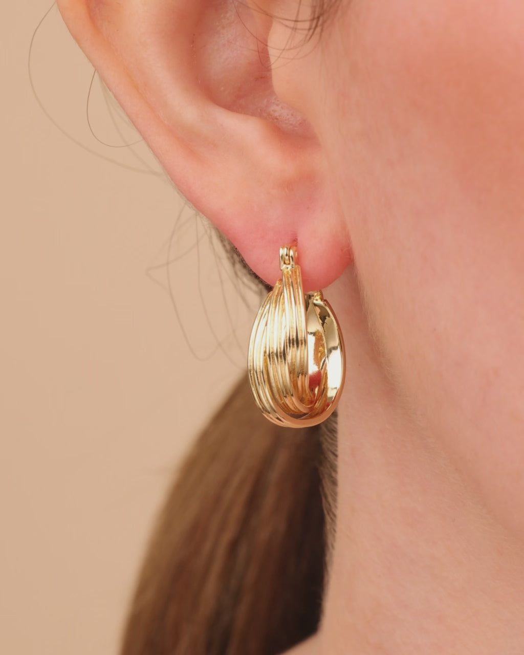 Sculptural and eye-catching, these layered hoops bring dimension to your everyday look. Featuring three sleek rows intertwined in a bold silhouette, they strike the perfect balance between modern edge and timeless elegance.