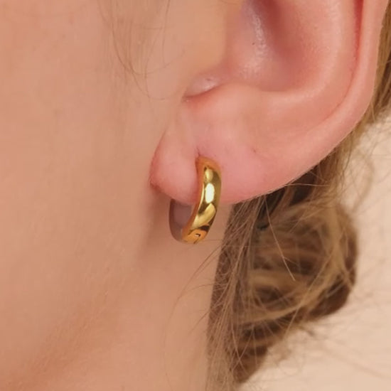 Double the tone, double the style. These mini hoops blend gold and silver in a sleek, sculptural form—perfect for everyday wear or subtle stacking.