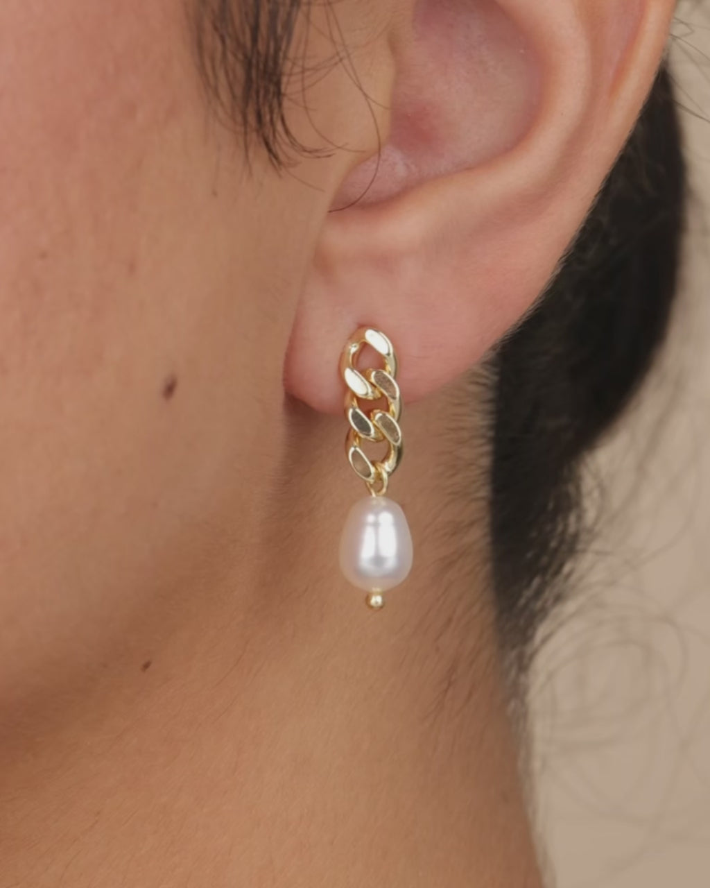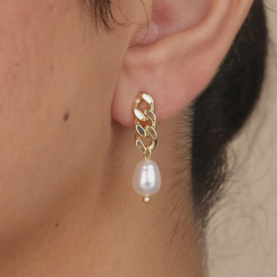 Modern meets classic. These drop earrings pair a bold curb chain top with a luminous faux pearl, offering a fresh spin on timeless elegance. Just as perfect with a black blazer as they are with a silk slip dress.