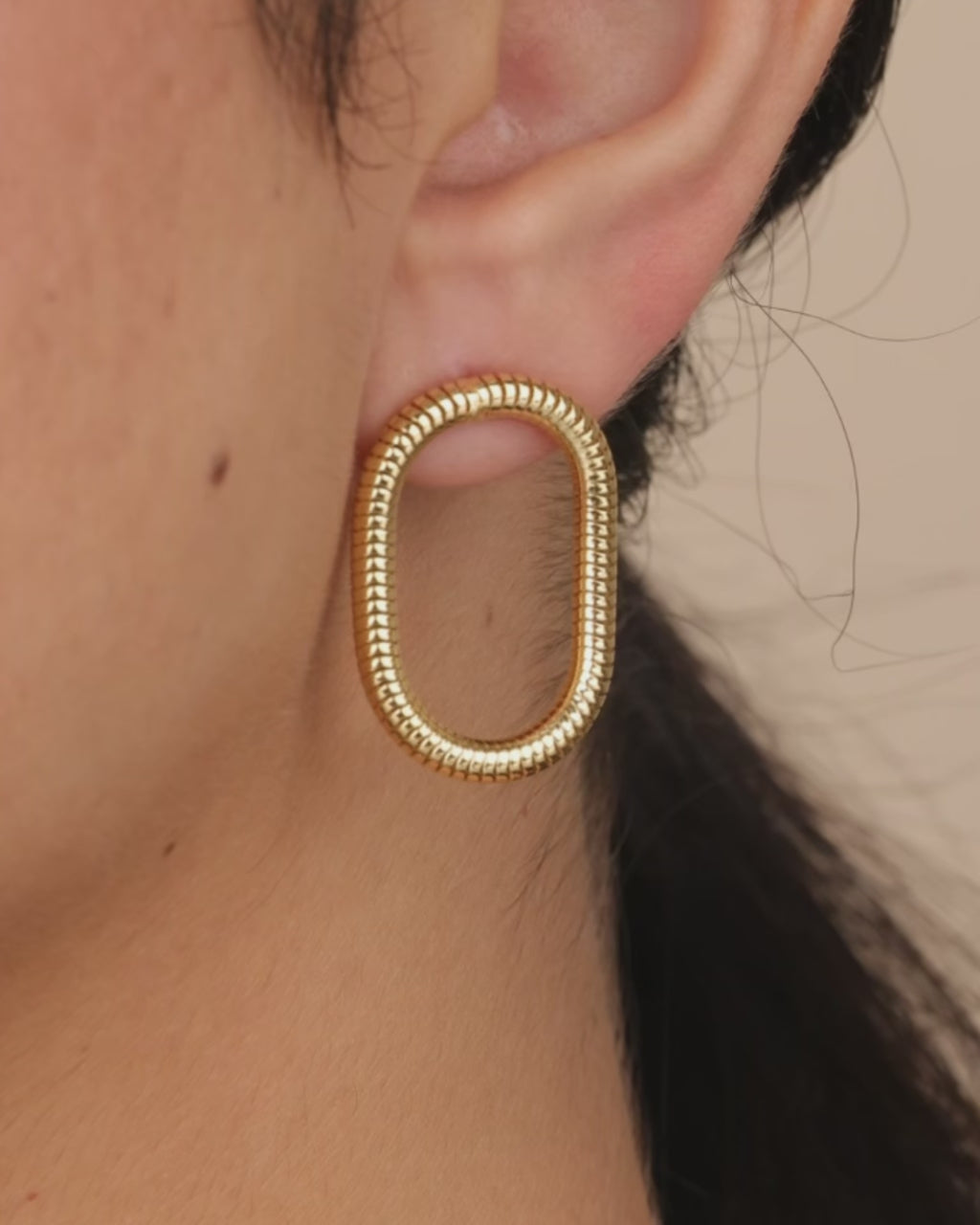 Elevate your style with our Sterling Silver Indigo Snake Chain Circle Studs. These unique circles feature a delicate snake chain detail and a ribbed surface, adding an element of luxury to any outfit. Handcrafted with sterling silver, these studs are both elegant and exclusive.