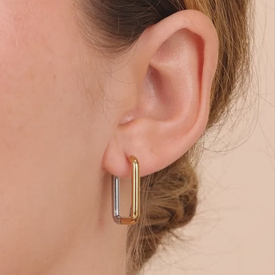 Minimal shape. Major impact. These rectangular hoops bring modern edge with a two-tone twist—designed to break your styling rut without breaking your vibe.