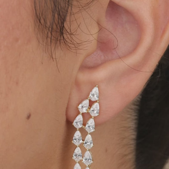 Elevate your accessory game with our Jane CZ Layered Drop Stud Earrings. The sparkling CZ tear drops and dangling design add a touch of sophistication, while the stud feature ensures a secure yet stylish fit. Make a statement with these elegant earrings.