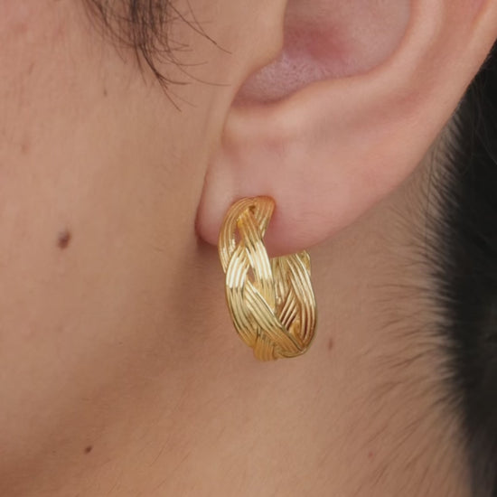 These textured hoops weave vintage character into a modern silhouette. The braided finish adds movement and dimension, making them a standout on their own or stacked with minimalist studs. A forever favorite for your curated collection.