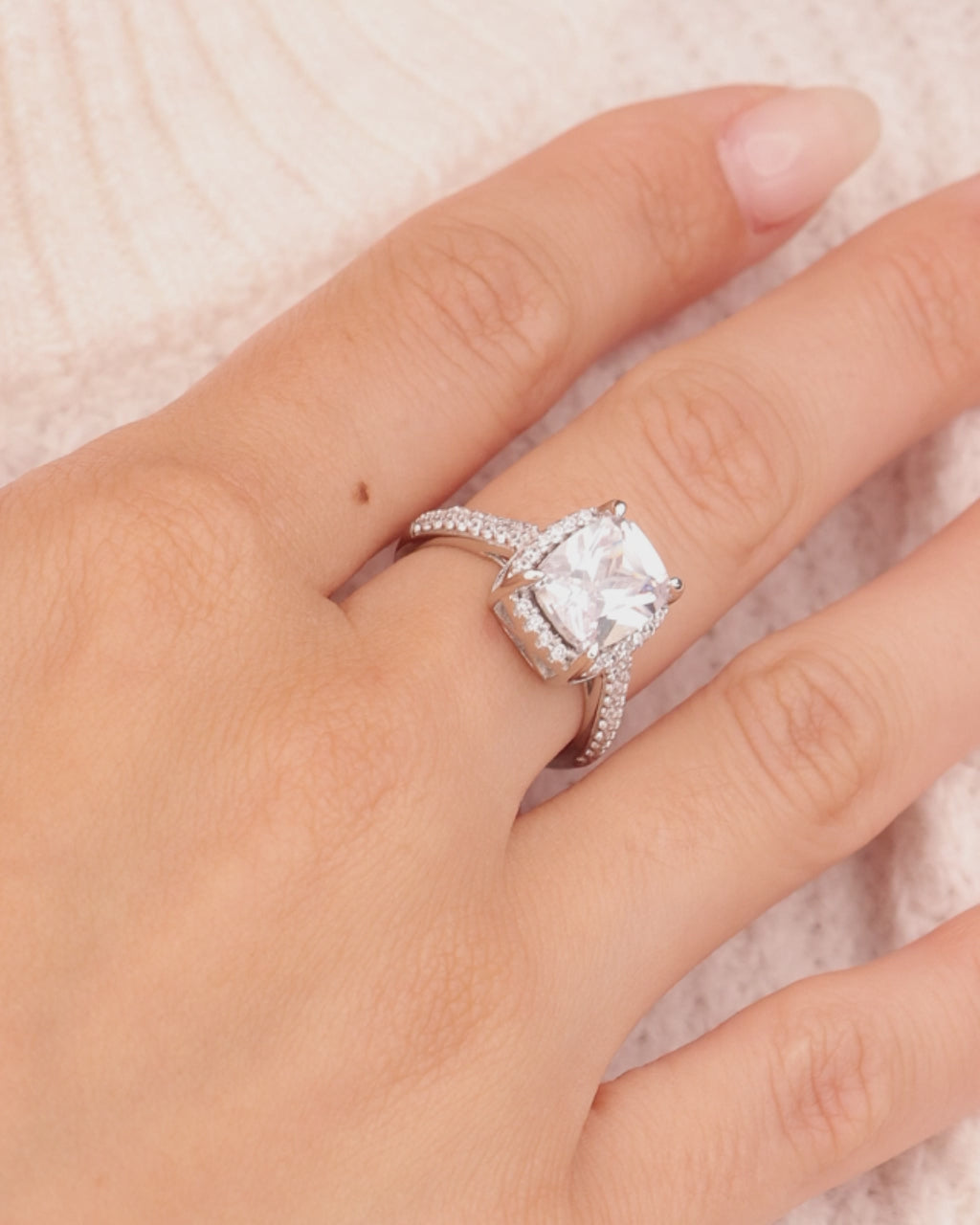 The Jessa CZ Radiant Ring features an radiant-shaped center CZ held in place by four elegant prongs. The sparkling CZ studded band adds a touch of sophistication to this luxurious and exclusive ring. Elevate your style with this radiant and breathtaking piece.
