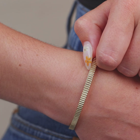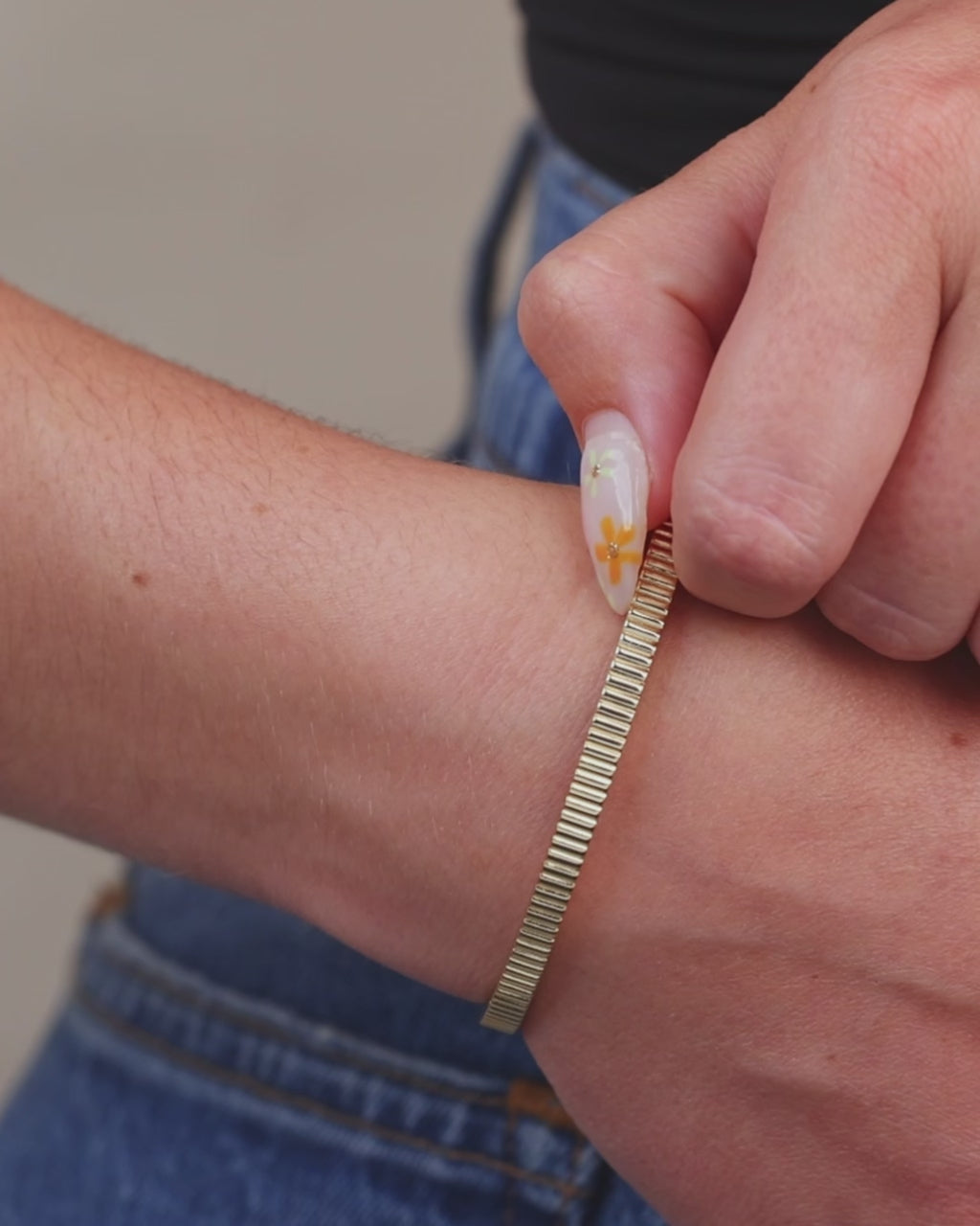 A sleek, textured bangle that plays it cool while doing the most. Stack it up or let it steal the spotlight solo.