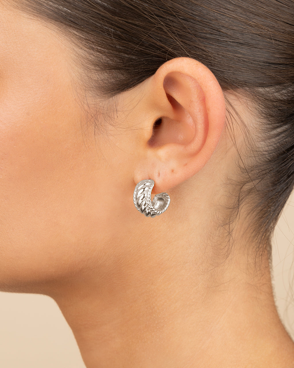 Kalina is all about texture — a rounded hoop with soft, sculptural ridges, and rope-like detail. Compact and dimensional, not too big, not too basic — just confidently in-between.