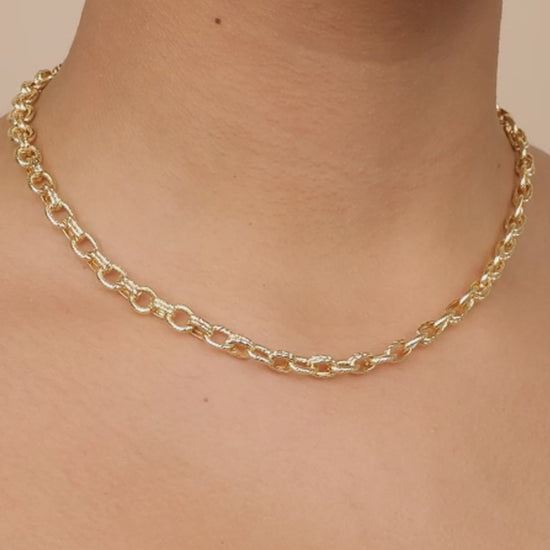 An icon with texture. This rope-link chain adds polish to even the simplest looks, thanks to its twisted detailing and subtle shimmer. Wear it solo as a statement or layer it with mixed-length chains for a stacked, gold-drenched vibe.