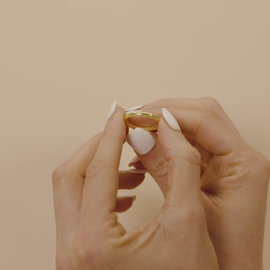 Elevate your style with the Kayden Thin Textured Ring. Its thin, polished band is adorned with a studded outer layer, creating a unique and luxurious look. Add a touch of sophistication to any outfit with this exquisite piece.
