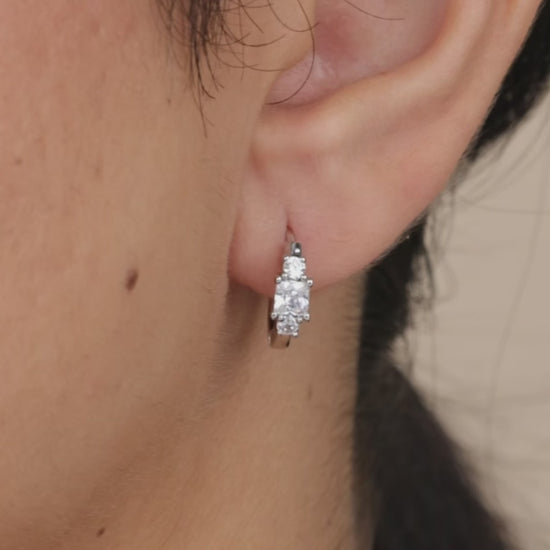 A bold sparkle in a compact silhouette—meet the Kendall CZ Hoops. Featuring a striking trio of brilliant-cut stones, these mini hoops bring sculptural shine to any look. Stack them with studs or wear solo for max impact in minimal space.